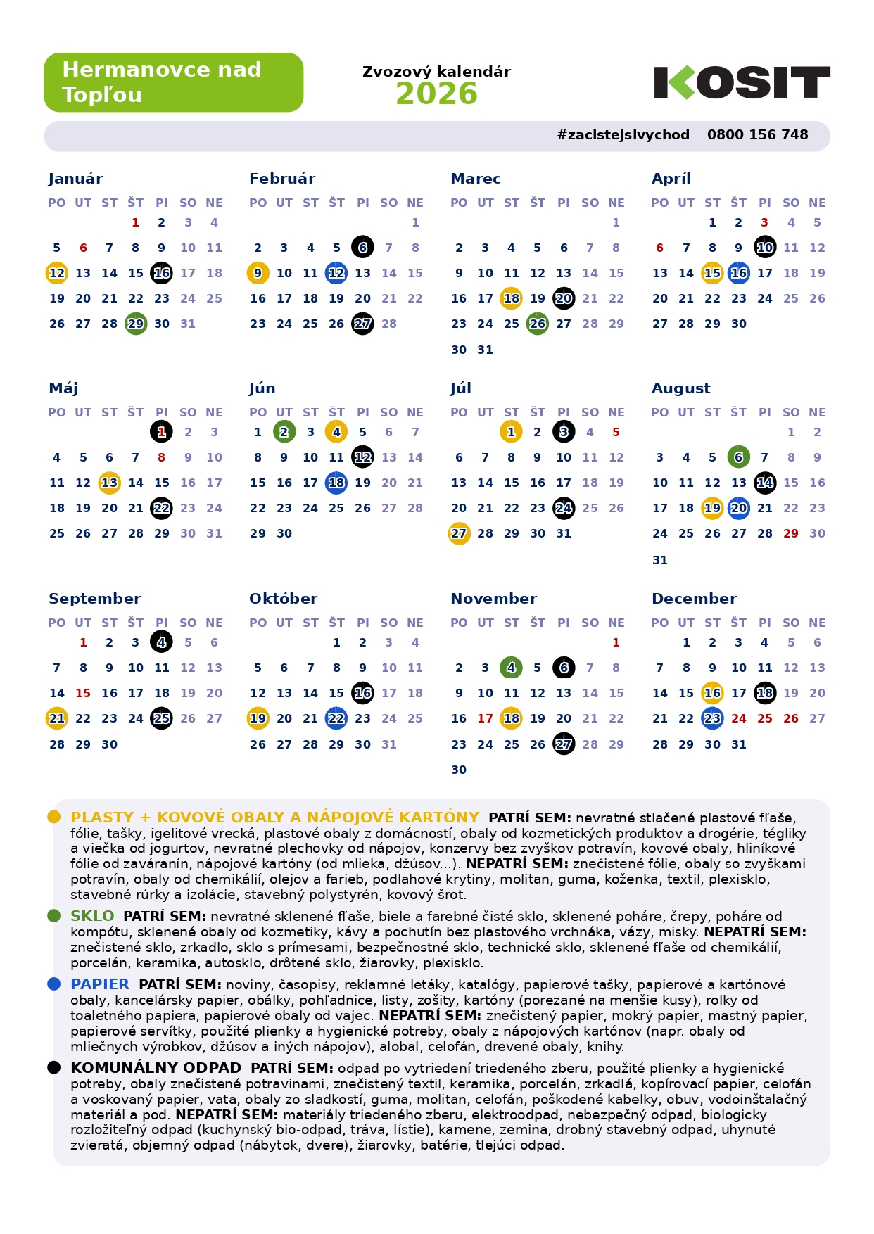 Kalendár odvozu odpadu