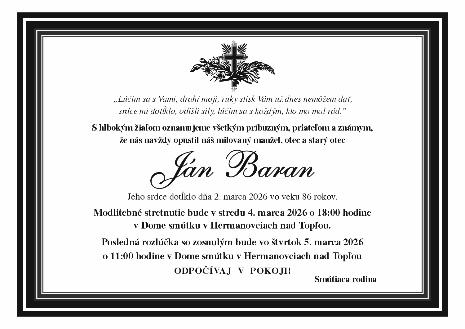 Posledná rozlúčka s Jánom Baranom